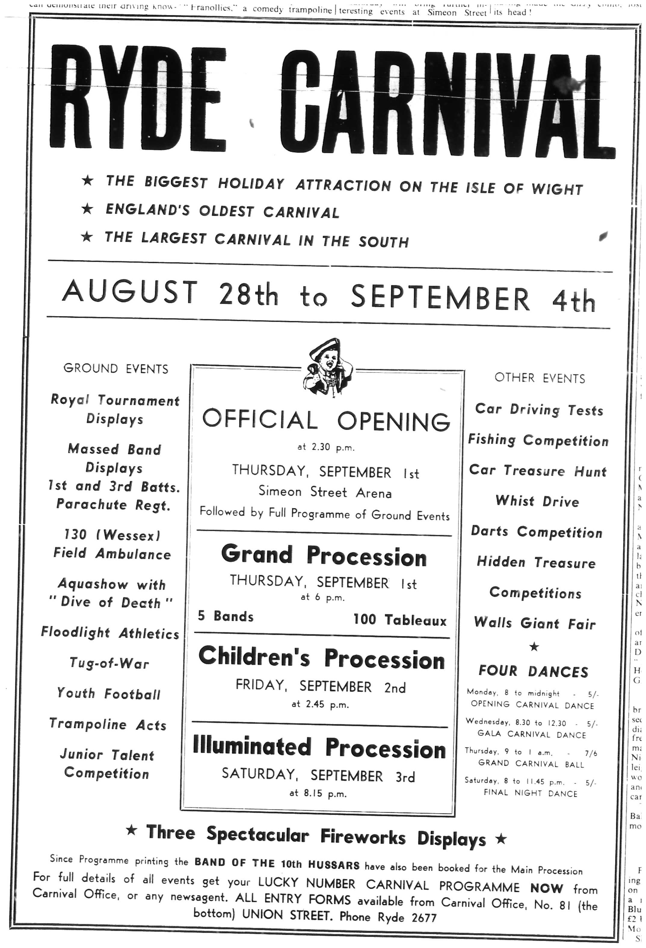 Ryde Carnival is the oldest carnival in England, dating back to 1887 the Diamond Jubilee of Queen Victoria, and this takes place every year. Victoria Street was en route for the procession, with a couple of period photos showing Downing and Donovan (Ryde Garage) on Carnival Day. Ryde Carnival is very popular with both locals and tourists all coming out to see the processions. With that in mind, wouldn’t it be great to get the new Triumph Herald Convertible in the showroom in time for the Carnival?
