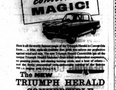 Further findings and this time it is rather brilliant – dates September 3, 1960 this is the advert by Isle of Wight Triumph Dealer Downing and Donovan for their new Triumph Herald Convertible available to […]