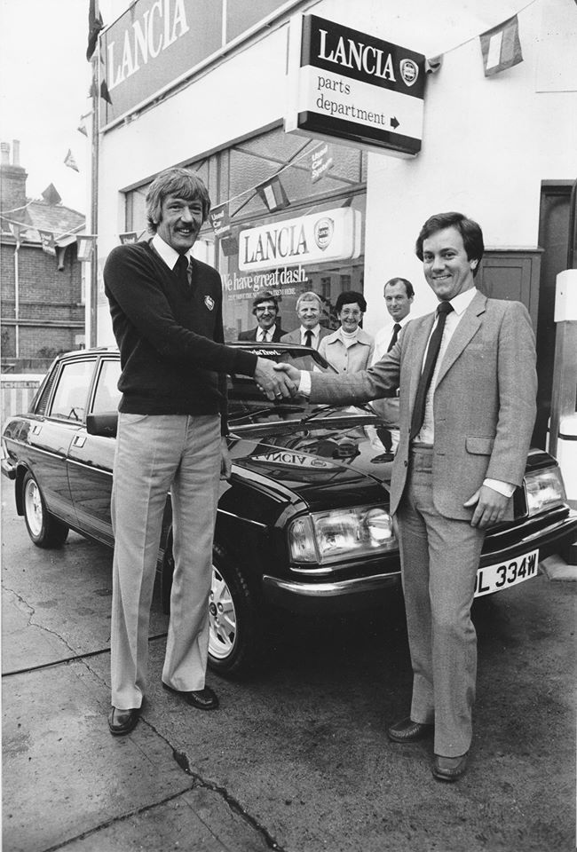 This great photo has emerged with a couple of names too. Garage owner Ralph Shotter is here on the left, shaking the hand of a customer? In the background is Brian Shotter with the glasses and the lady – who worked at Ryde Garage for many years, was known as Margaret. It’s difficult to date the photo – is that a brand new W reg Lancia, if so it’s 1980.
