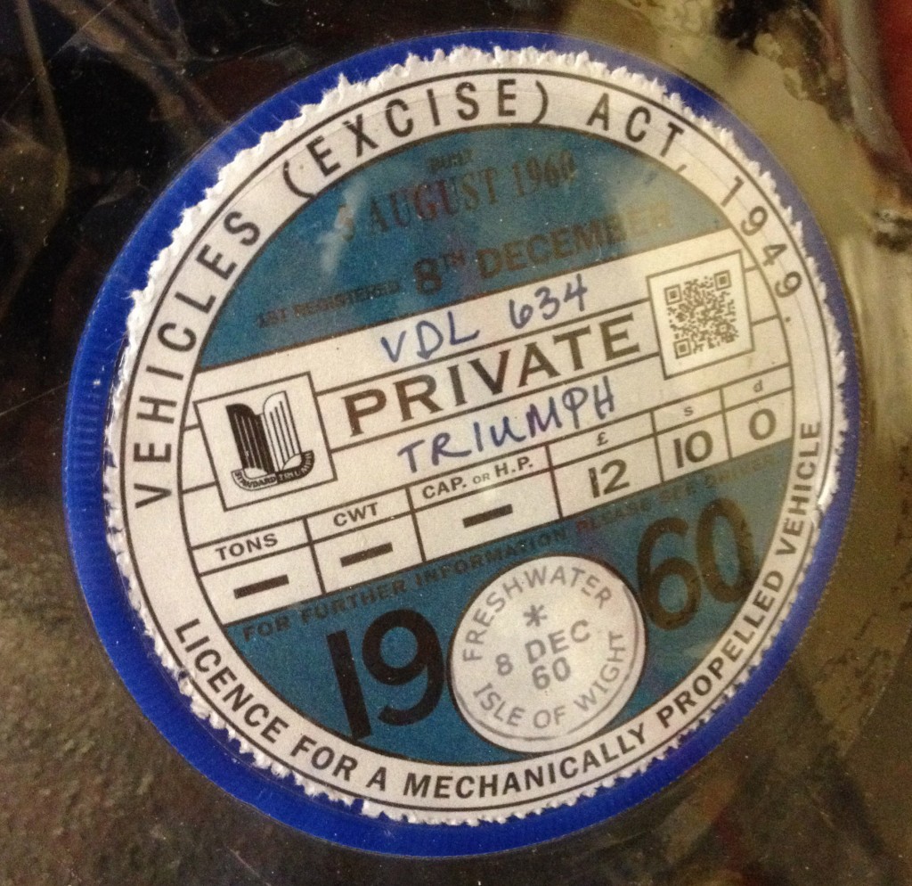No more. The end of an an era and such a shame for owners of classic cars as the old tax discs are really good to save for the history of the car. There are reproduction discs available online with most people getting the ‘wrong’ date being the initial registration date as opposed to when the original disc would have expired. However, I have produced my own stating both build and first registered dates for 1960. In position it works quite well!