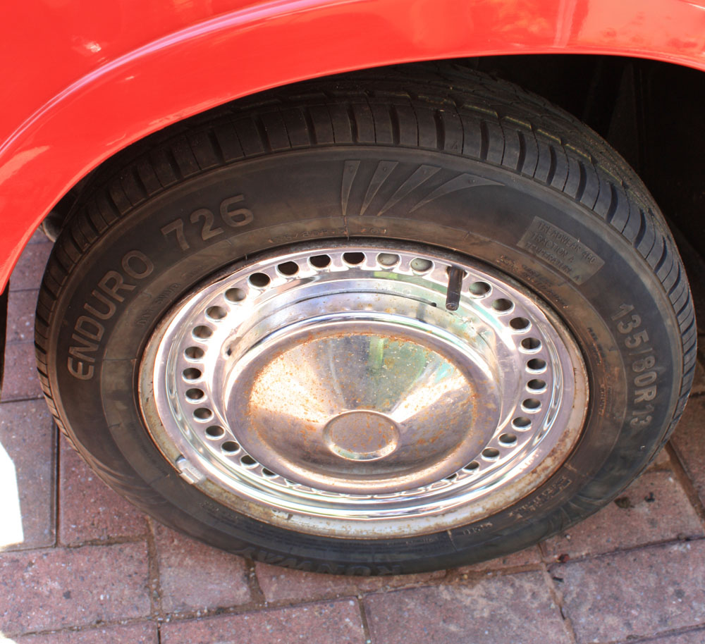 We have to admit from a reasonably short distance our 948cc Convertible looks pretty good. It has been treated to an ‘outer’ side respray in the original colour of Signal Red at some point the past (we’d love to be able to determine when) however a couple of areas upon close inspection were beginning to look very tired – one of the first items to address were the wheels.