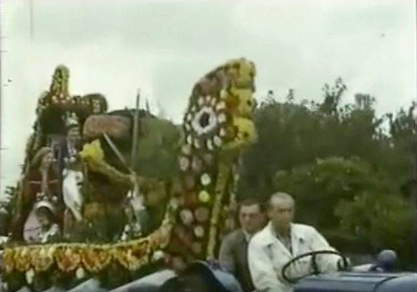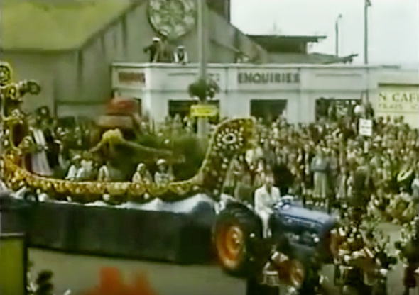 Warner’s had two entries in this year’s procession – the aforementioned featuring a 60 foot long dinosaur, with a cave on a following float, and a ‘South Pacific’ entry, from the St. Clare’s camp. Both entries won a cup – the Puckpool entry won the Percy Cup as the tableau, and St. Clare’s won the Walls Cup for best holiday camp float. That float comprised a 30 foot US sailor with numerous characters from the film and stage musical.