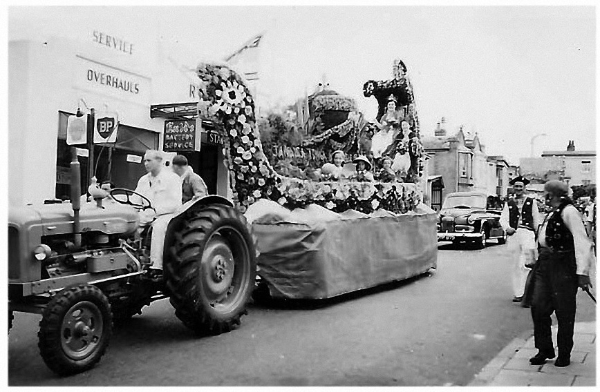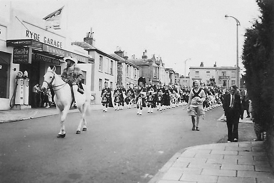 “The Carnival of 1960 was led as usual by Archie Warren astride his grey mare Freda, who had 12 carnival parades to her credit. This was despite the fact that Archie had been involved in a riding accident on Ryde Sands only five weeks previously. However an unusual event caused it to be remembered more than most, as the ‘pre-hysteric Era’ float entered by Warner’s Puckpool Holiday Camp and peopled by holiday makers,caught fire on its way along Melville Street, resulting in two cave men being hospitalised.