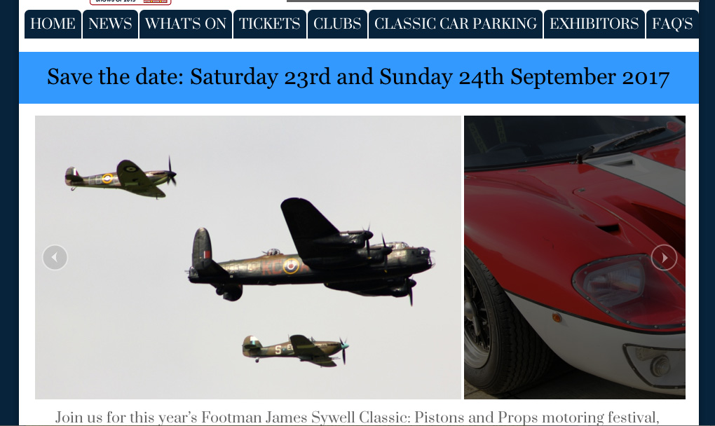 This is incredibly out of date and the very first photo you see is a Lancaster, Spitfire and Hurricane – this photo is (at least) three years old as the Lancaster forms part of the Battle of Britain Memorial flight and did not fly last year at all due to the grounding of the plane. The BBMF did not fly this year (2017) at Sywell (they were at Duxford) yet were still promoted on the website.