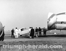 Un loading the new Triumph Herald convertible at Beauvais for the 1960 Paris Motor show. The 47th Paris Motorshow – The Paris Salon, “Salon de l’Automobile” – took place in October 1960.