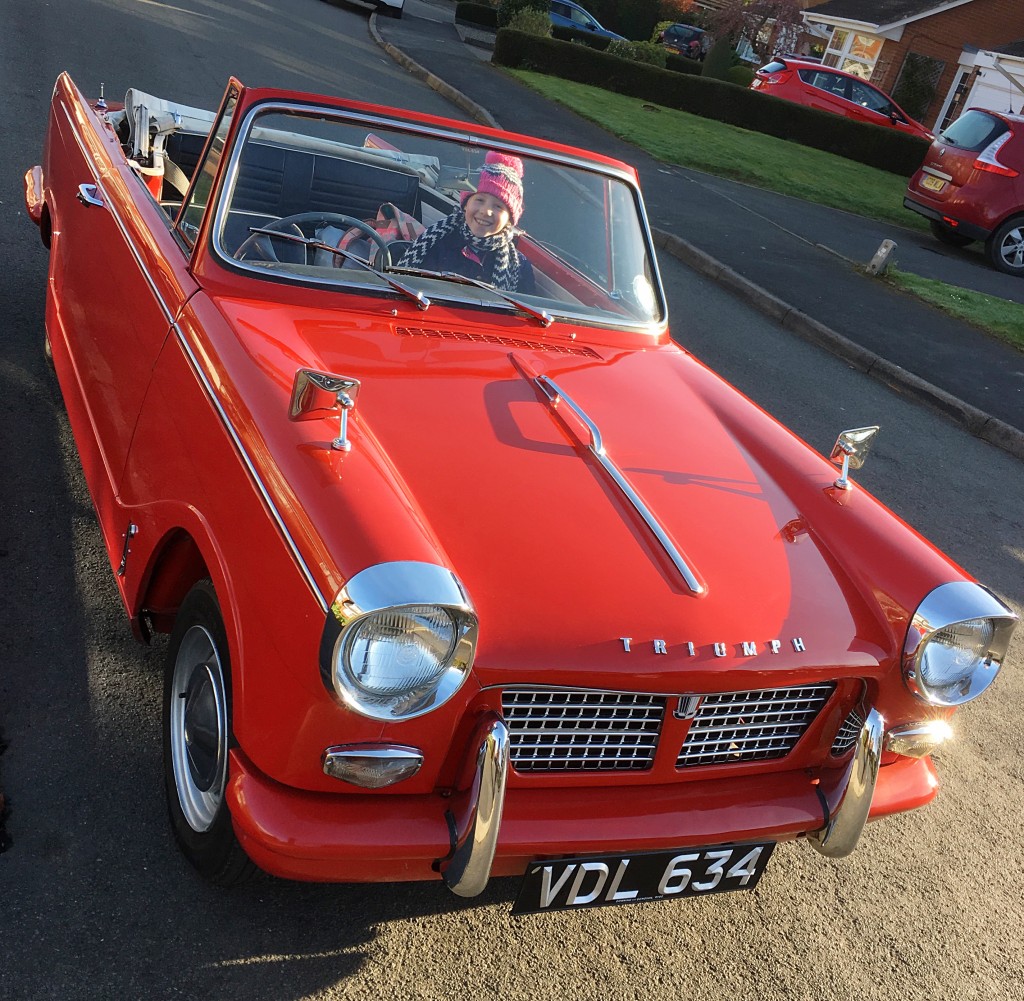Q. What could be better than a trip to school in a 1960 Triumph Herald convertible?