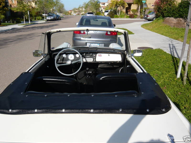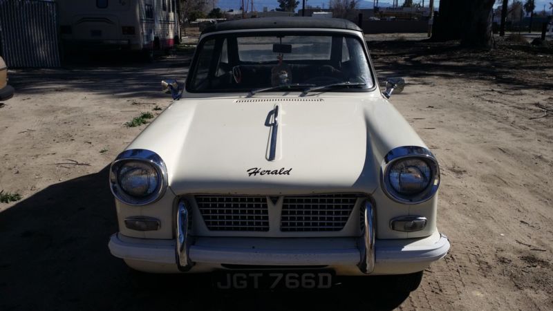 Here’s the advert: “This is a very rare Triumph Herald Twin S U carbs for performance, in excellent condition. Drive it anywhere. It is a convertable, awesome in summer. Everybody is amazed at the look of the car, a full back seat for two people.”